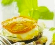 Rinse and trim the aubergine and squash, and cut into medium thick slices. Slice the halloumi cheese into thin slices. Place the vegetables and cheese in layers. Start with a slice of aubergine, then cheese, squash, cheese, tomato and end with cheese.