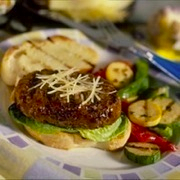 4. Place one lettuce leaf on four of the bread slices; top each with a burger. Sprinkle evenly with cheese; cover with remaining bread slices. Cut burgers in half, if desired; arrange on lettuce-lined platter, if desired.
