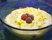 Whip the cream (it should not be too firm). Stir the orange zest into the cream and cover the custard with big spoonfuls of cream. Chill for a couple of hours before serving. The trifle is best if made a day before.