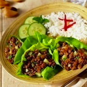 2. Just before serving, add cucumber and torn mint; toss gently. Season with salt and pepper. Serve beef mixture in lettuce leaves. Garnish with mint.
